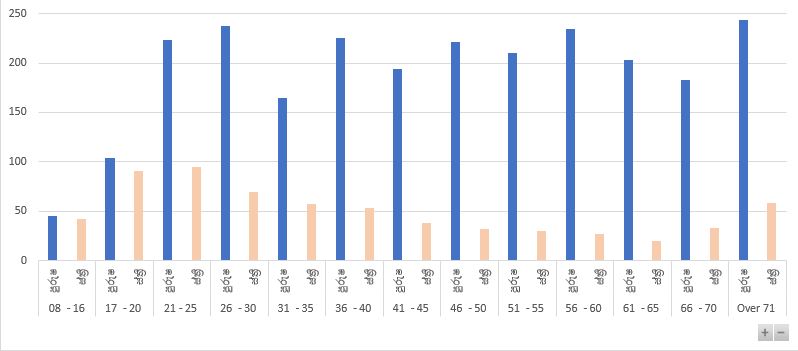 මෙම සටහන අනුව, අවුරුදු 20ට අඩු වයස් කාණ්ඩයන්ගේ ස්ත්රී පුරුෂ සියදිවි නසාගැනීම ආසන්න වශයෙන් සමාන වුව ද, අනෙකුත් වයස් කාණ්ඩයන්ගේ ස්ත්රී පුරුෂ සියදිවි නසාගැනීම අතර පරතරය ඉතා විශාල ය. එමෙන්ම අනෙකුත් වයස් කාණ්ඩයන් අතර ඇත්තේ සමස්ථයක් ලෙස සමාන තත්ත්වයකි.